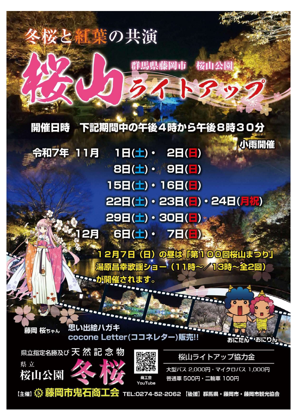 11月1日から桜山のライトアップが始まります。 目の前に映る冬桜と紅葉の共演を見ることができます。 時間は午後4時~同8時30分 11月は土日・祝日に開催 12月は6日(土)、7日(日)に予定しており、7日は第100回 …