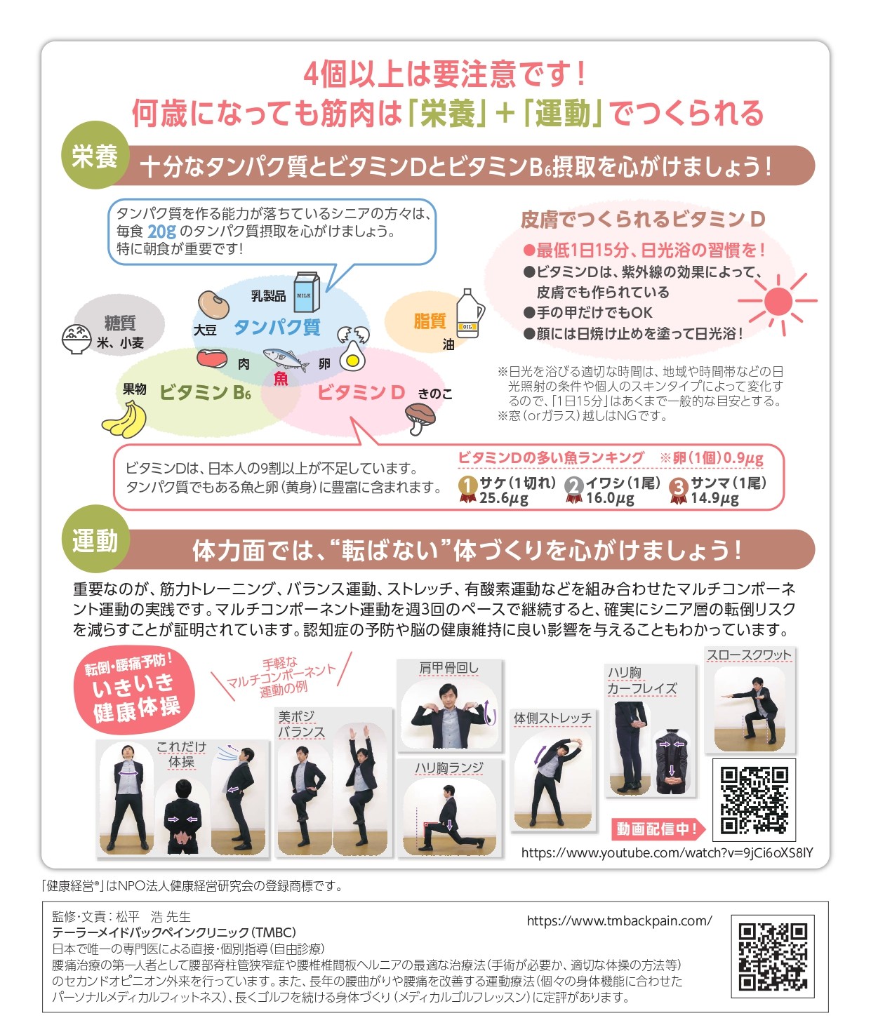 まずはフレイルのリスク度チェックを行い、下記の資料を参考にして「栄養」と「運動」を両立させていきたいですね。