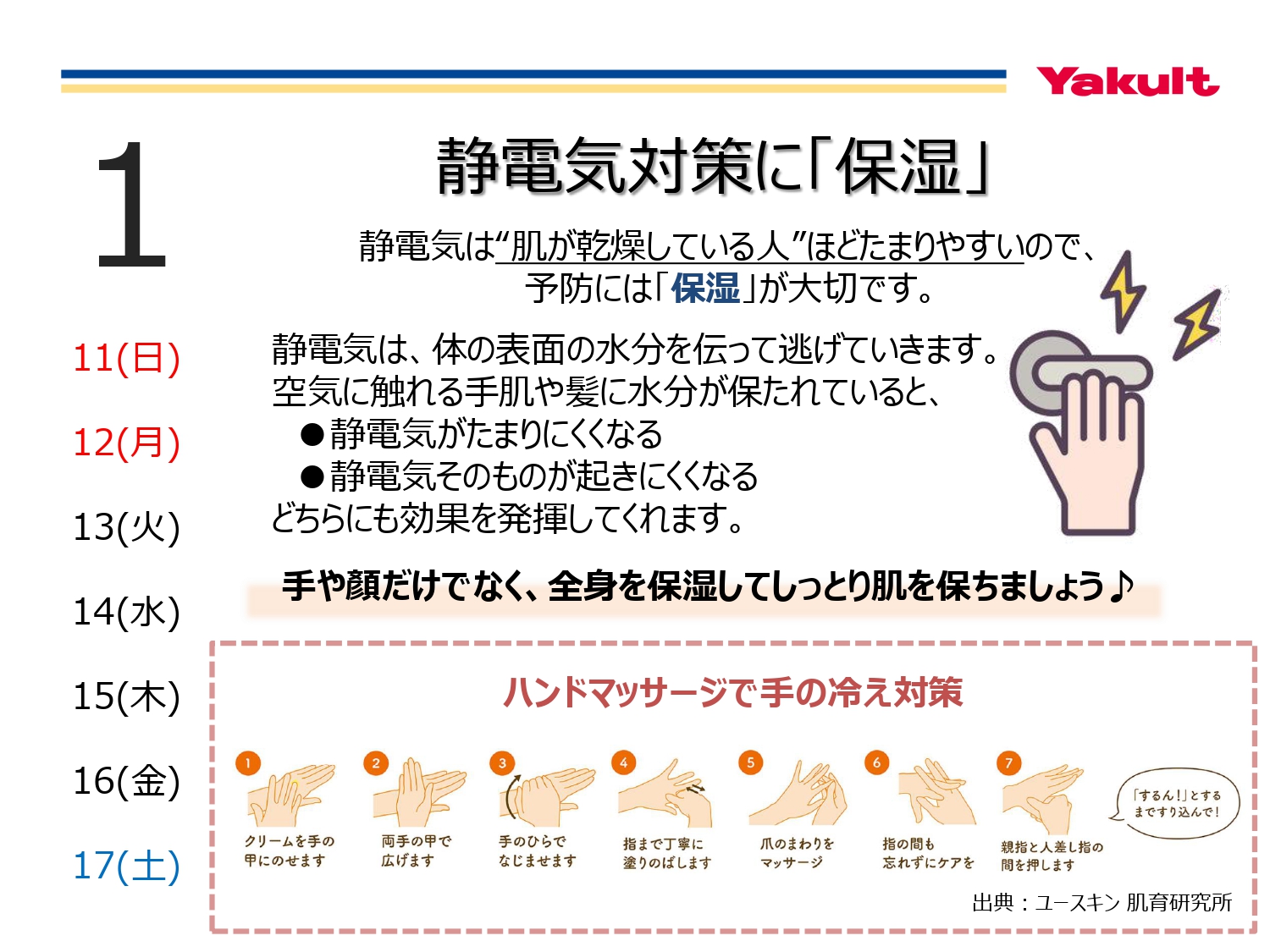 この時期は肌の水分量が最も少なく、赤みや、かゆみが出るケースがあるので十分な保湿が大切です。