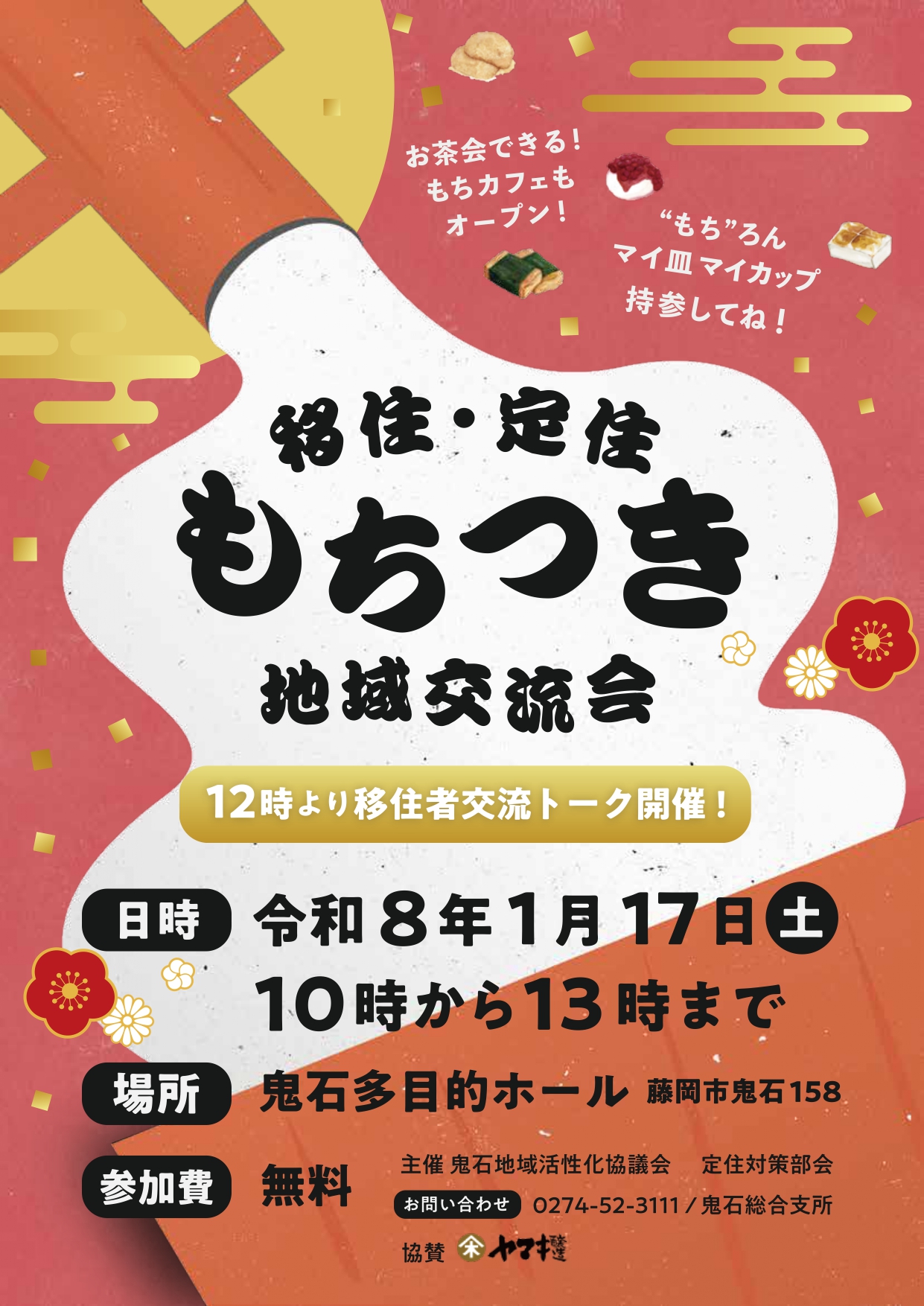 当日は、餅つきをはじめ、移住者交流トークなどが催されます。