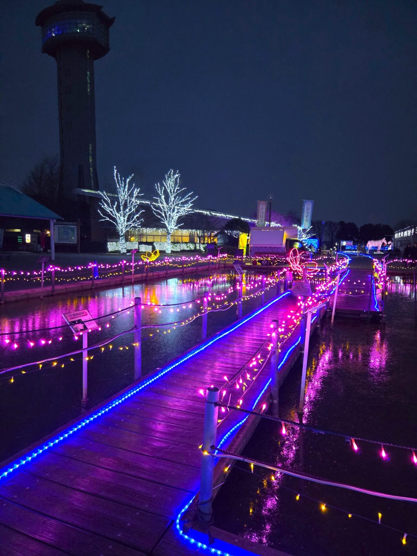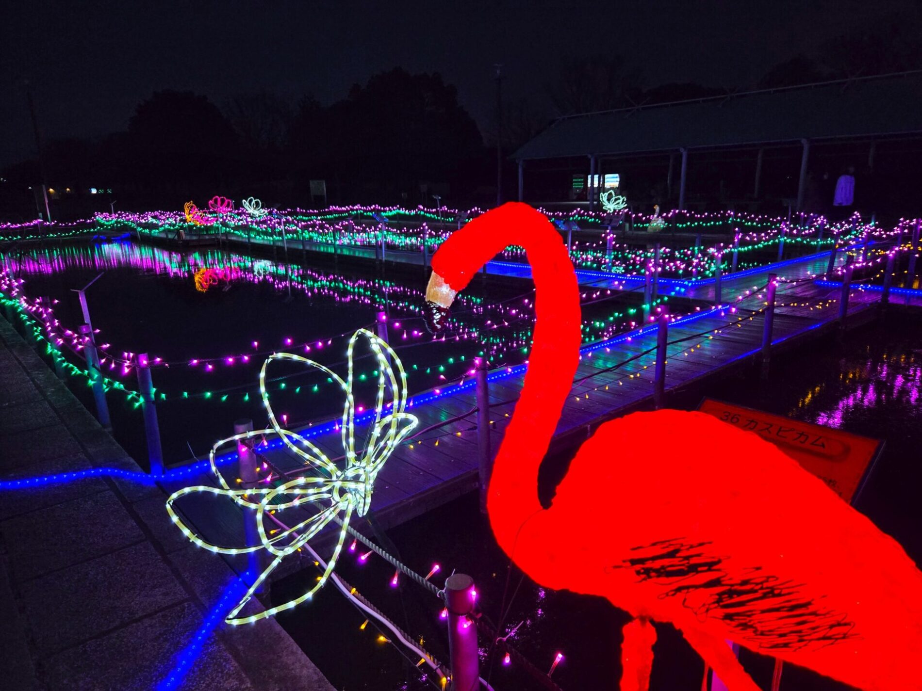 埼玉行田の古代蓮の里で恒例のイルミネーションが行われました。