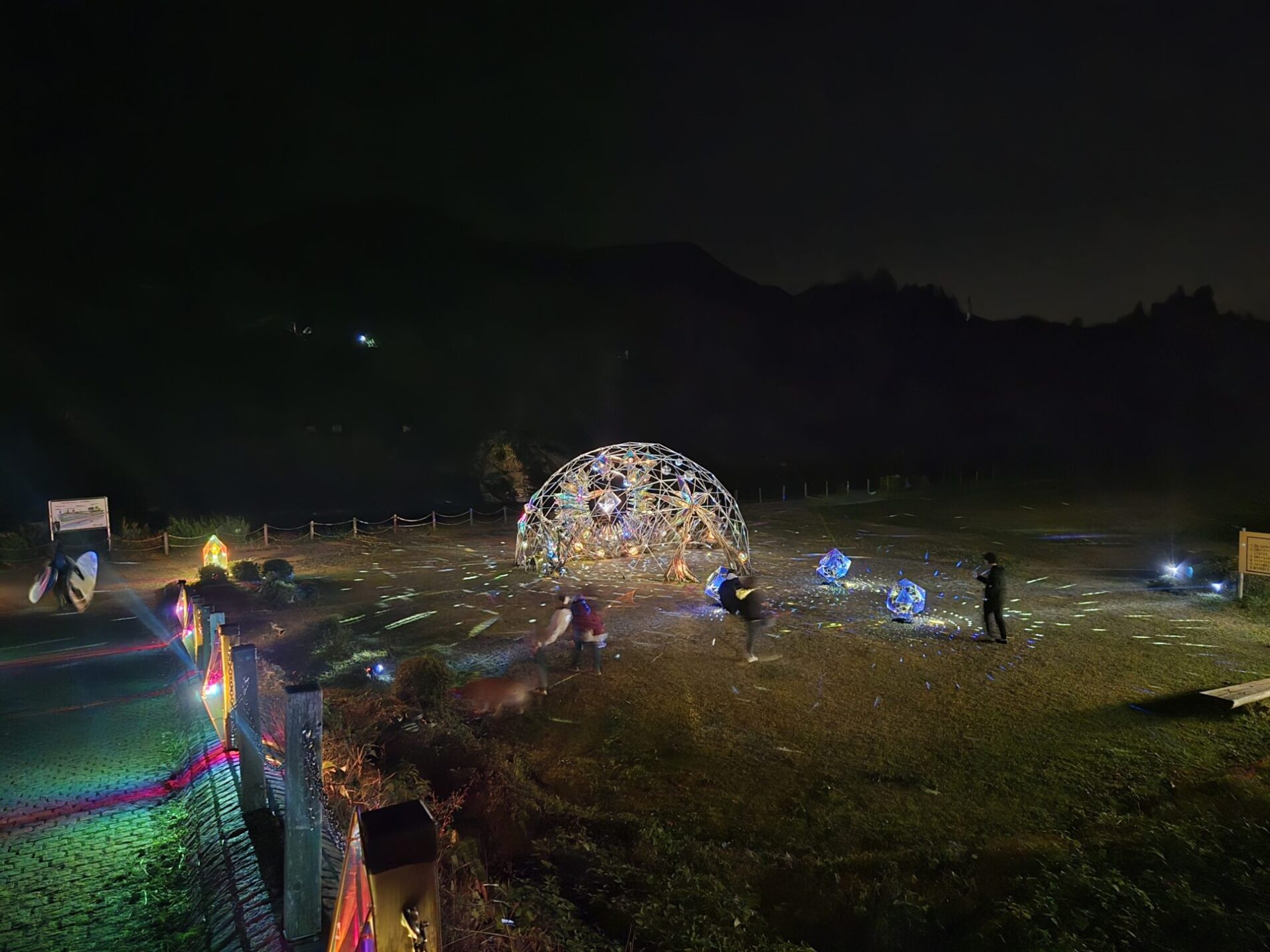 「幻想的な光のアートと、水と森が響きあう空間」がテーマとされ、癒しの音色と共に圧倒的な別世界を演出しています。