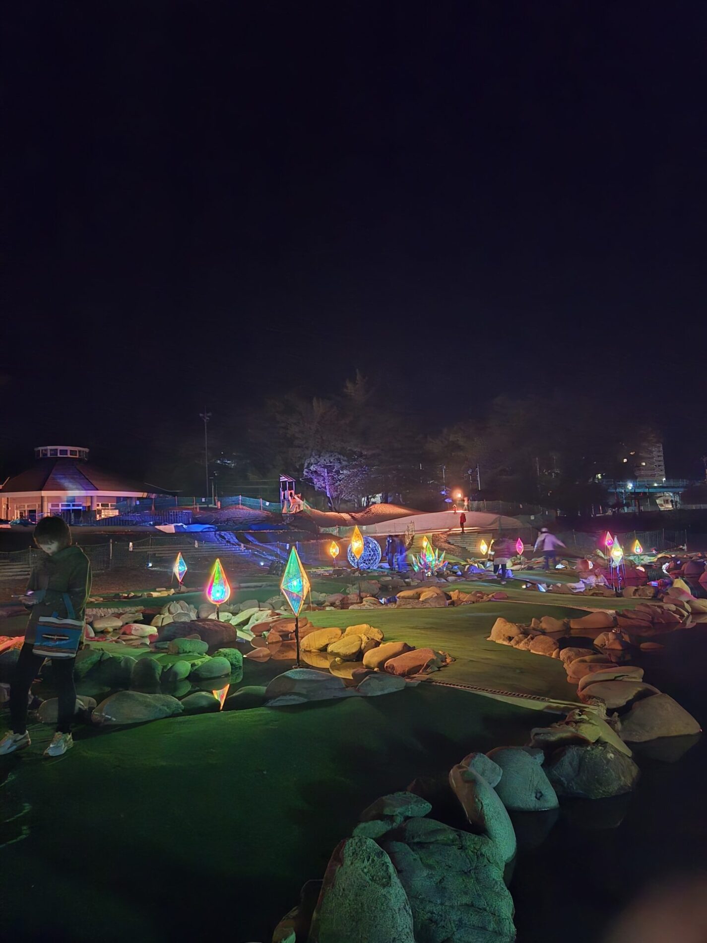 群馬みなかみの温泉街にある道の駅水紀行館・清流公園を舞台に、「ミナカミ ライト フェスティバル(水と光のナイトガーデン)」が開かれています。