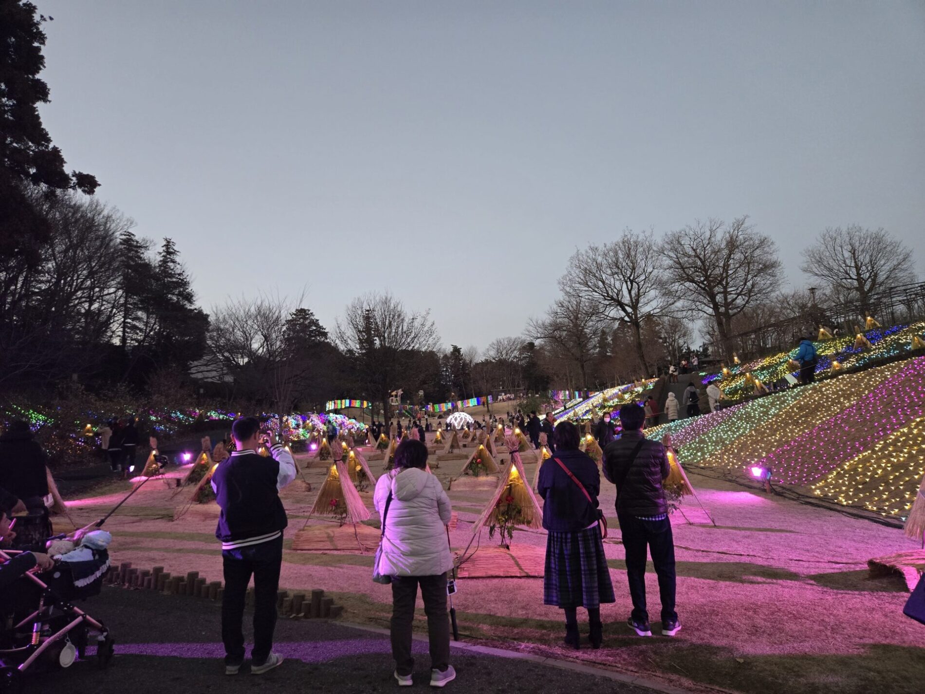 時間ごとに変わる光のバリエーションは素晴らしいの一言で、いつまでも見とれる見物客の姿が目立っていました。