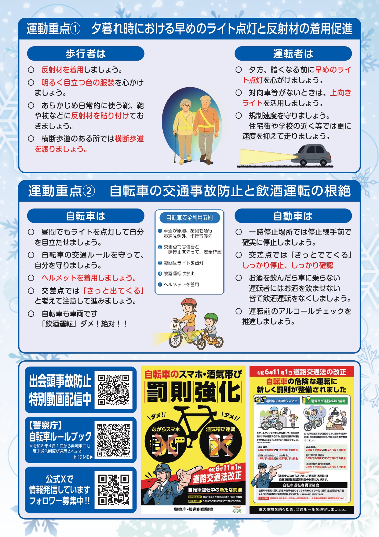 12月1日から10日まで「冬の県民交通安全運動」が実施されます。